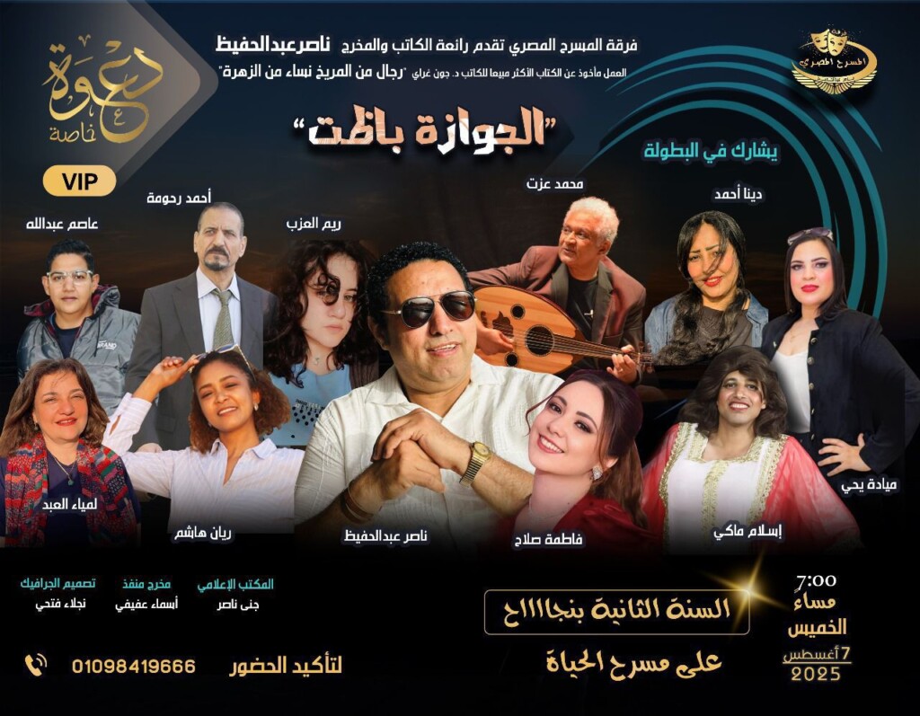 يشهد الخميس المقبل ليلة استثنائية لعشاق فرقة المسرح المصري التي تقدم عرضين في يوم واحد الاول الجوازة باظت في تمام السابعة مساء والثاني مسرحية الست ” في تمام التاسعه مساء علي مسرح الحياة