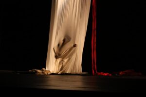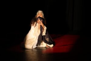 وشهد العرض إقبالا من الجمهور، حيث يقدم رؤية فنية مختلفة للنص الاصلي لفريدريك جارسيا لوركا الذى يحمل اسم “عرس الدم”، حيث تقدم كل الشخصيات الدرامية ممثلة واحدة، الأم والعروس والموت المجسد فى صورة القمر كما تعلق الممثلة نفسها على الاحداث نفسها فى محاولة للبحث عن حقيقة الصراع.