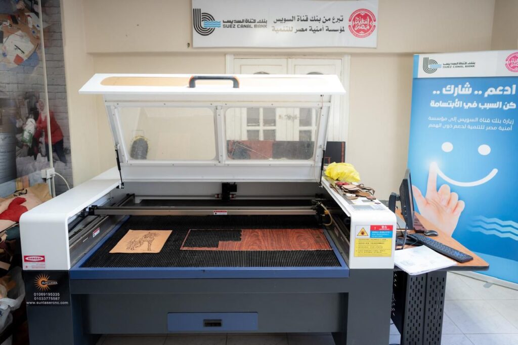 شمل التبرع توفير ماكينة ليزر فى مركز التدريب الصم وضعاف السمع بمحافظة الجيزة لدعم (250 ) شاب وشابة من فئة الصم وضعاف السمع الذين يمتلكون حرف يدوية لتشغيل الوحدات الأنتاجية ، بجانب توفير الكميات المطلوبة من الأنتاج من الجلود والأقمشة والأخشاب وغيرها من الخامات التى تساهم فى جودة الإنتاج في كل من محافظة أسيوط والفيوم والمنيا والقاهرة والتي تخدم آلاف الأسر لتمكين فئة ذوي الهمم اقتصاديًا في المجتمع.